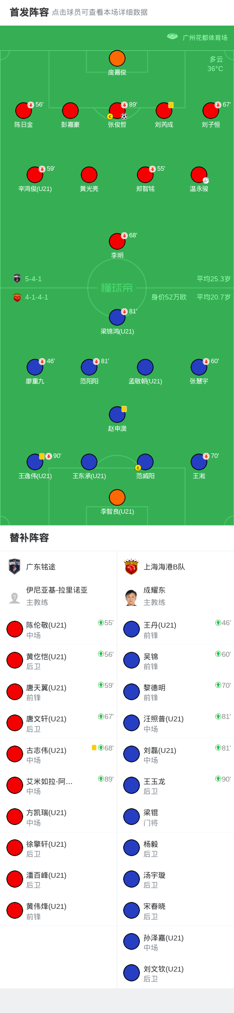 北京时间10月18日,广东铭途在主场迎战上海海港B队。上海胜张俊哲头球破门,海港比赛开始